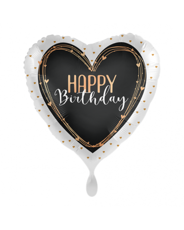 Ballon Alu - Happy Birthday - Coeur- 43 cm